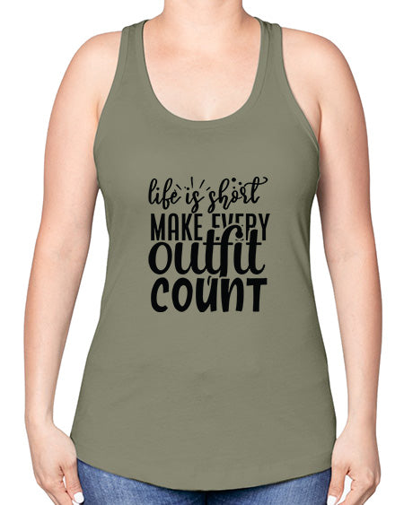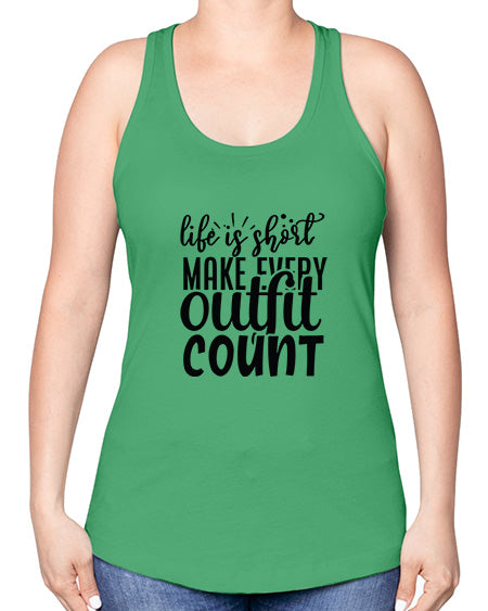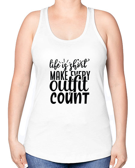 life is short make every outfit count 63#- graphic -Racerback Tank