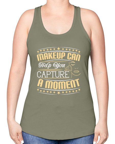 Makeup can help you capture a moment Style 195#- beauty - fashion -Racerback Tank Note: There is a 2 - 4 day creation time, which may delay shipping. Features: - 60% combed ringspun cotton/40% polyester lightweight jersey