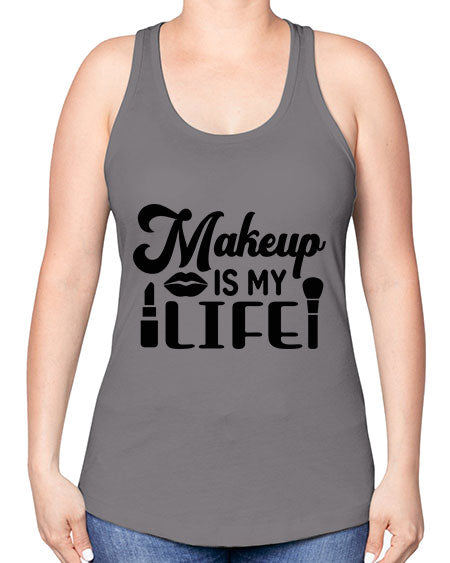 makeup is my life 16#- beauty - fashion -Racerback Tank Note: There is a 2 - 4 day creation time, which may delay shipping. Features: - 60% combed ringspun cotton/40% polyester lightweight jersey