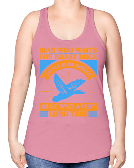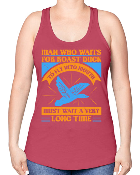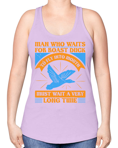 Man who waits for roast duck to fly into mouth must wait a very very long time Style 25#- ducks -Racerback Tank