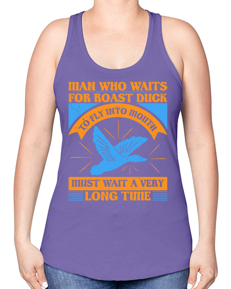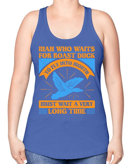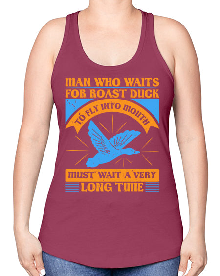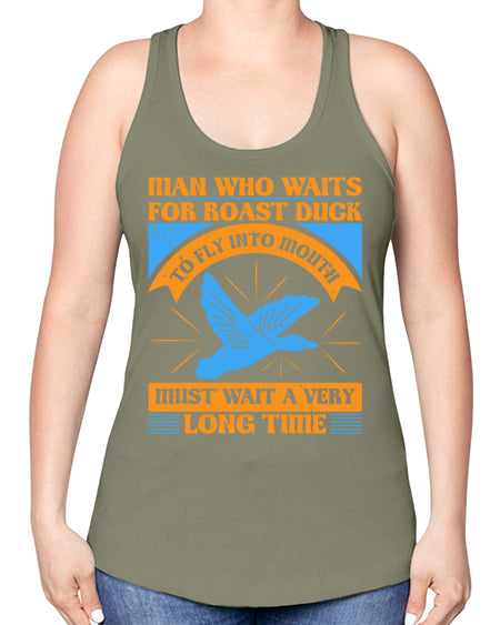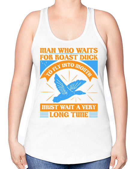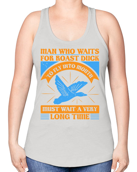 Man who waits for roast duck to fly into mouth must wait a very very long time Style 25# - ducks -Racerback Tank