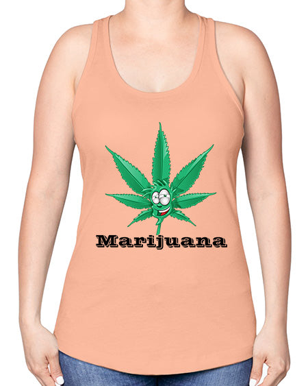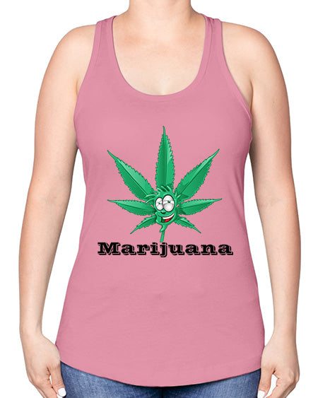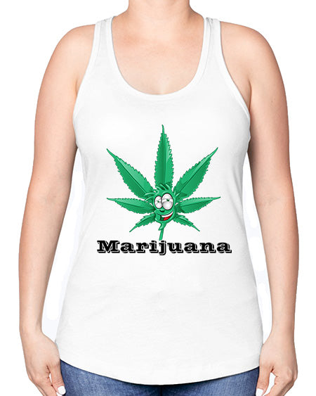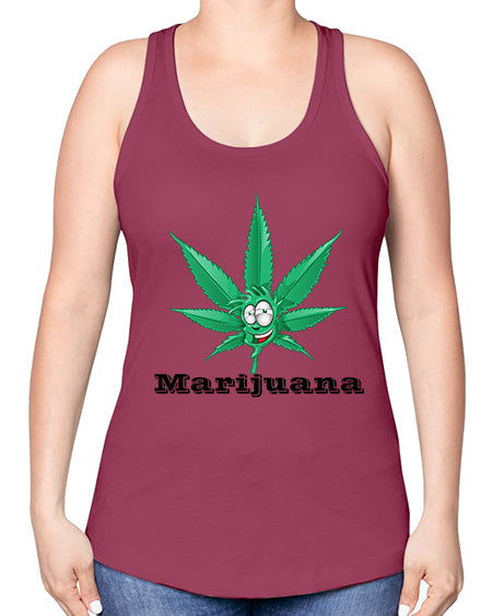 marijuana happy face 913#- graphic -Racerback Tank Note: There is a 2 - 4 day creation time, which may delay shipping. Features: - 60% combed ringspun cotton/40% polyester lightweight jersey