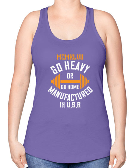 google-site-verification=jVrHOkW2AsgL_ozwUikqFQE6-Ke6U43Z8aLcUbXT5TE mcmxlvii go heavy or go home manufactured in 50# - gym -Racerback Tank – Tshirt Unlimited