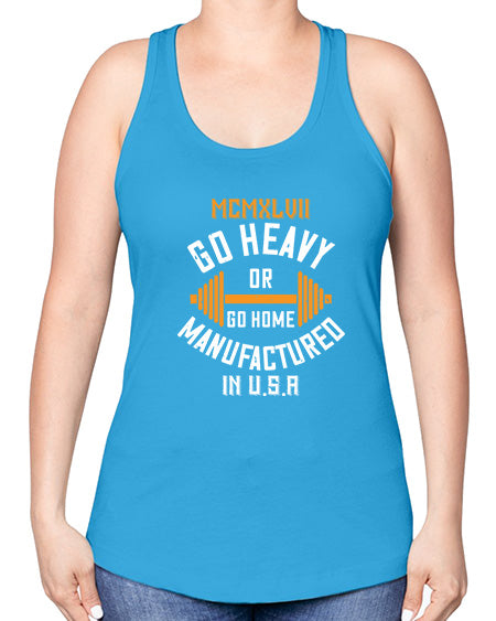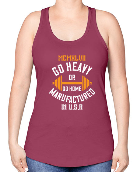 mcmxlvii go heavy or go home manufactured in 50# - gym -Racerback Tank
