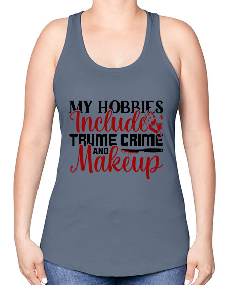 • my hobbies include trume crime and makeup 1#- beauty - fashion -Racerback Tank