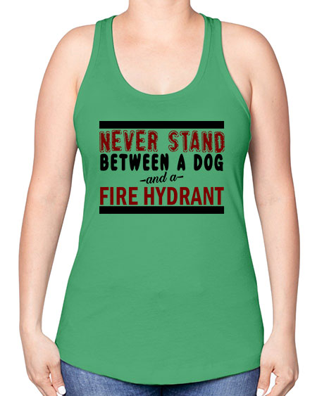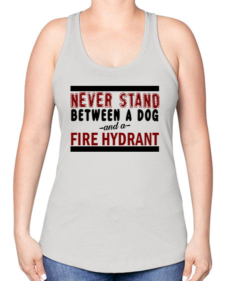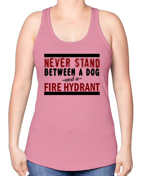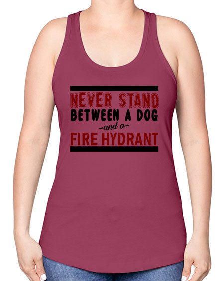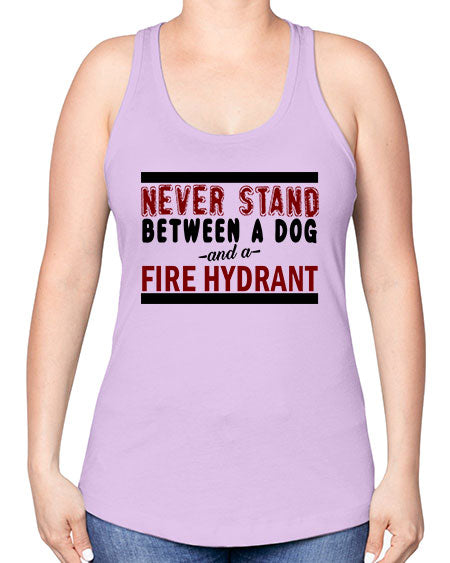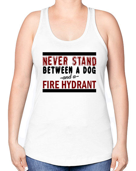 never stand between a dog and a fire hydrant - dogs -Racerback Tank