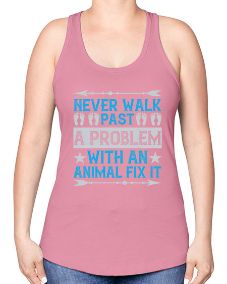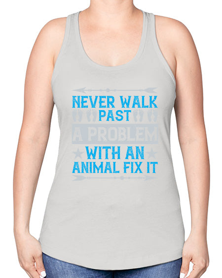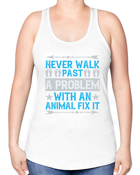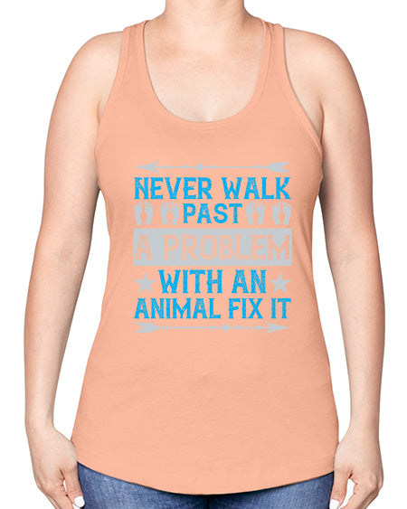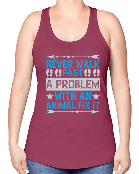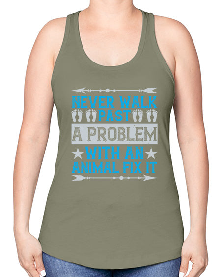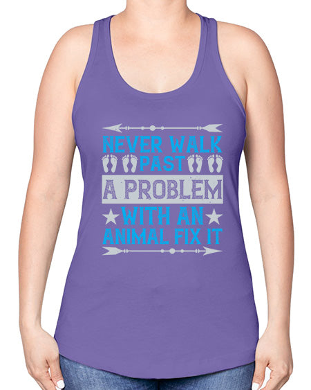 never walk past a problem with an animal fix it 471#- walking -Racerback Tank
