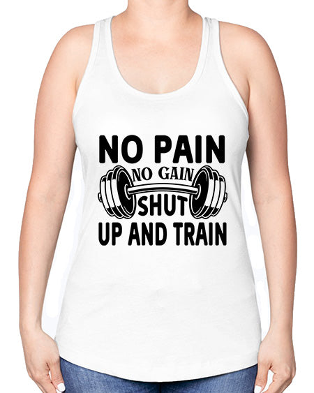 google-site-verification=jVrHOkW2AsgL_ozwUikqFQE6-Ke6U43Z8aLcUbXT5TE No Pain No Gain Shut Up and Train 476# - gym -Racerback Tank – Tshirt Unlimited