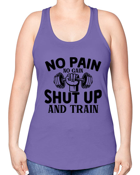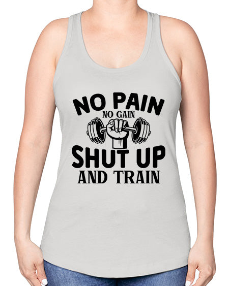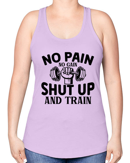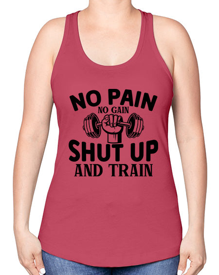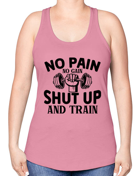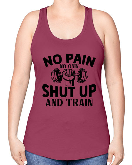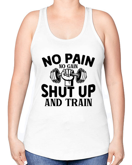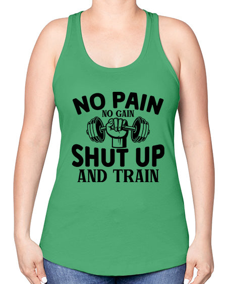 No Pain No Gain Shut Up and Train 477#- gym -Racerback Tank