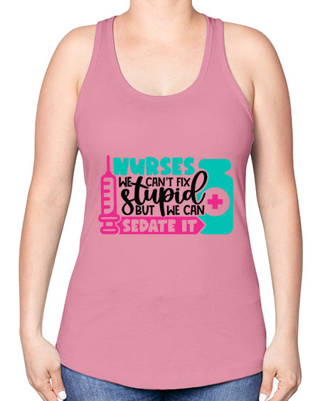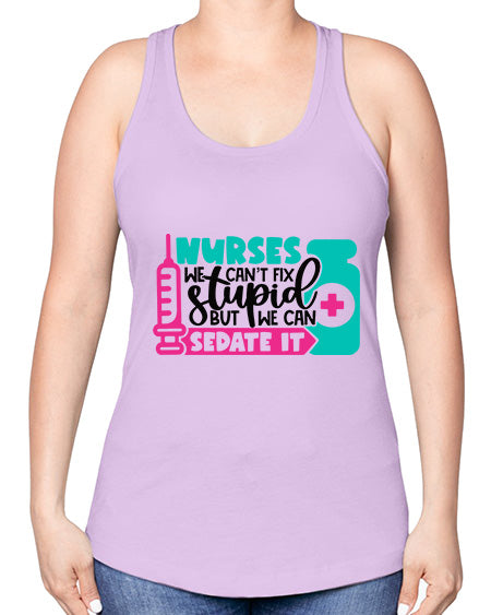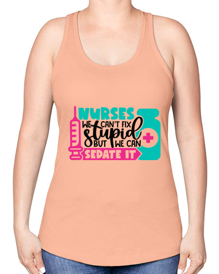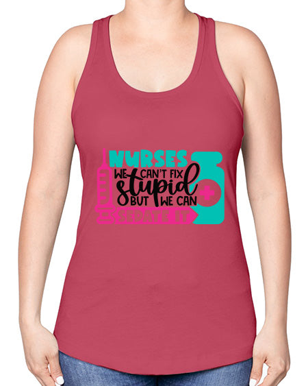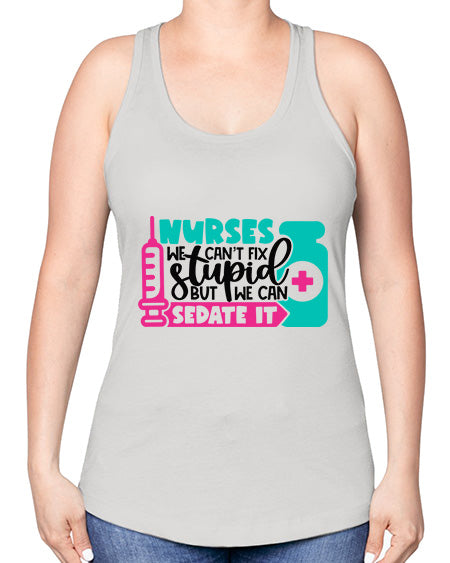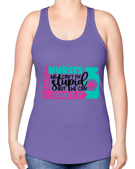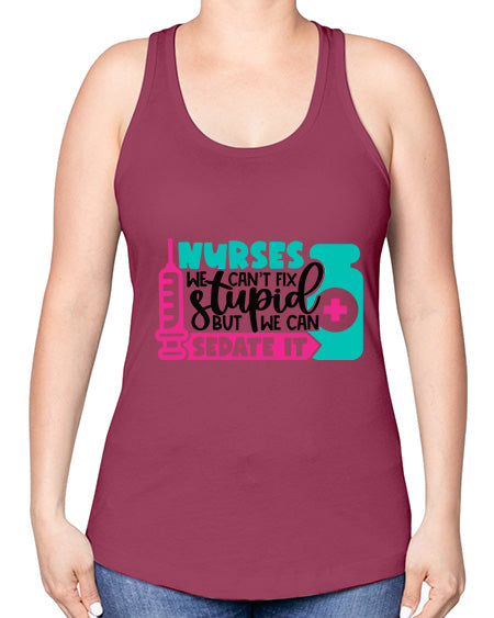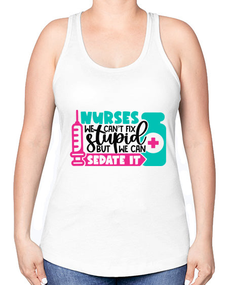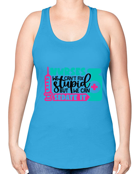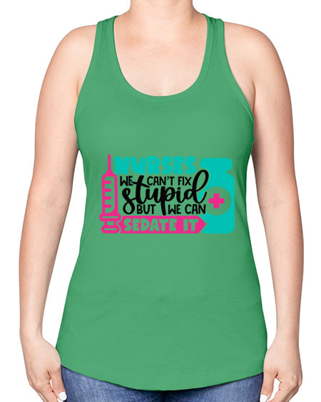 Nurses We Cant Fix Stupid But We Can Sedate It Style Style 1257# - nurse -Racerback Tank