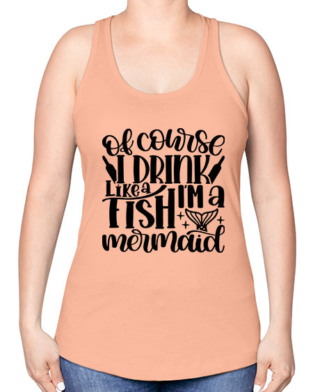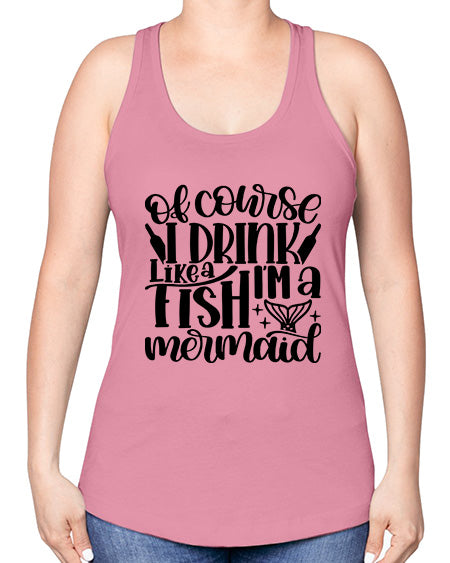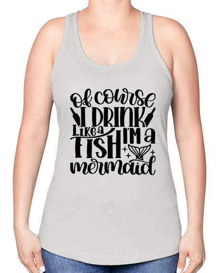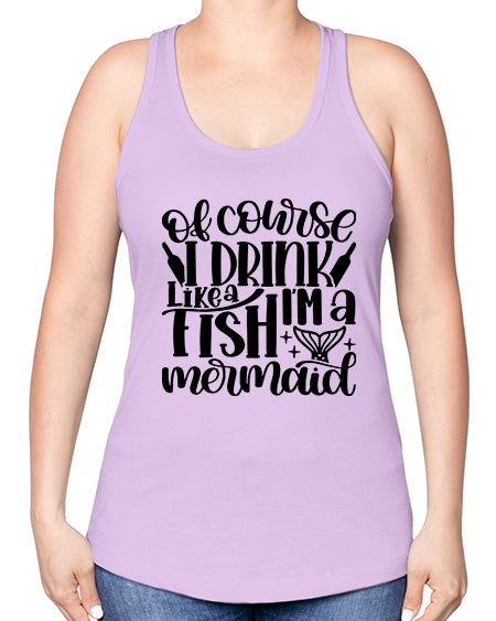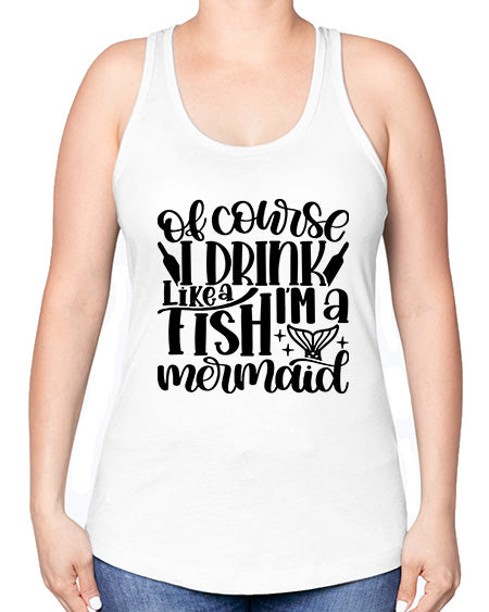 of course i drink like a fish 1452#- wine -Racerback Tank Note: There is a 2 - 4 day creation time, which may delay shipping. Features: - 60% combed ringspun cotton/40% polyester lightweight jersey