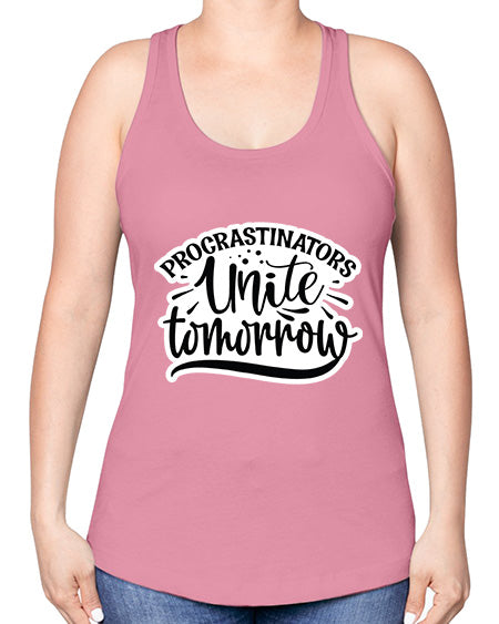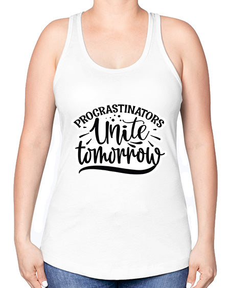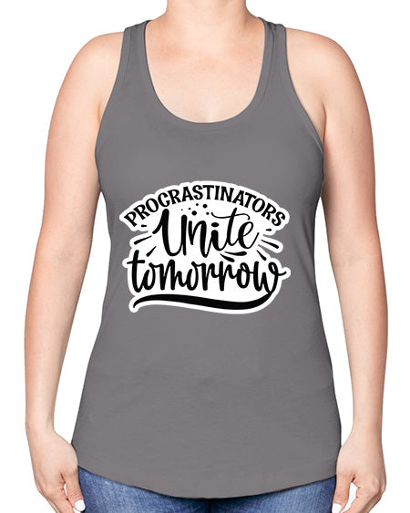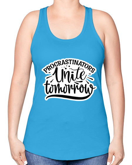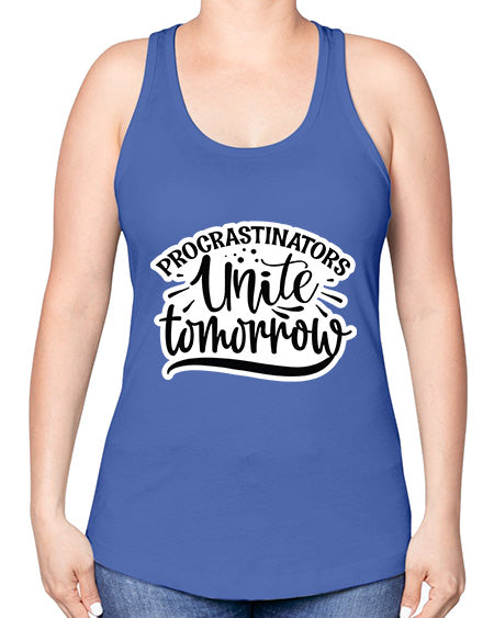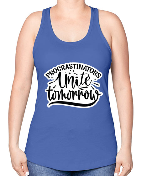 google-site-verification=jVrHOkW2AsgL_ozwUikqFQE6-Ke6U43Z8aLcUbXT5TE procrastinators unite tomorrow 1001# - funny -Racerback Tank – Tshirt Unlimited