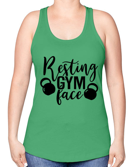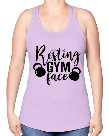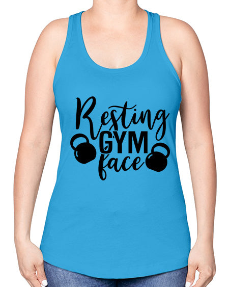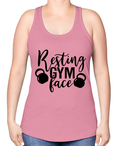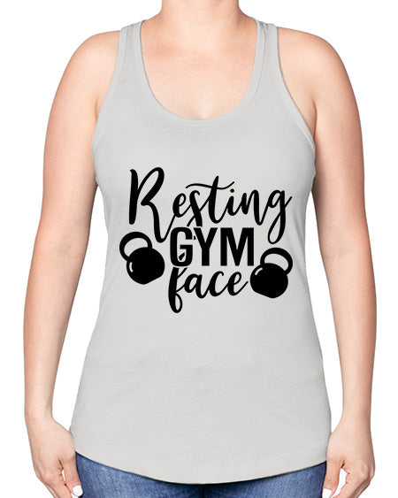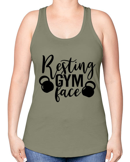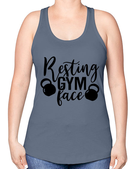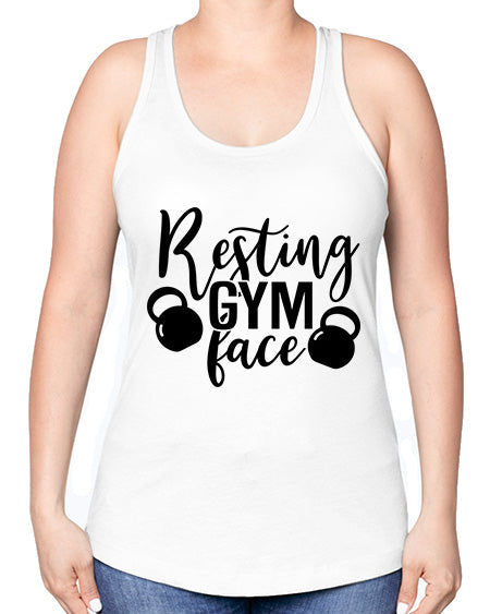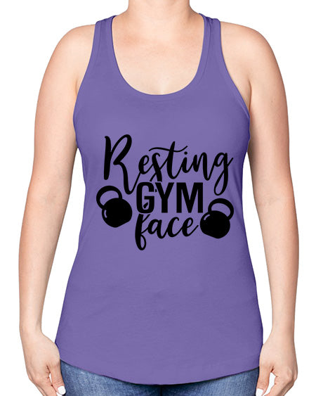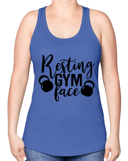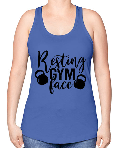 Resting gym face 498#- gym -Racerback Tank Note: There is a 2 - 4 day creation time, which may delay shipping. Features: - 60% combed ringspun cotton/40% polyester lightweight jersey
