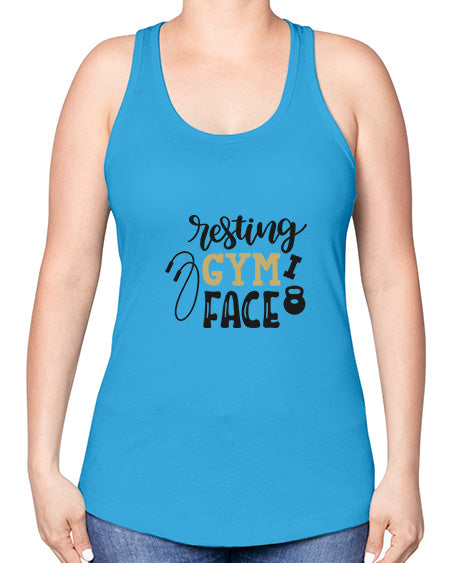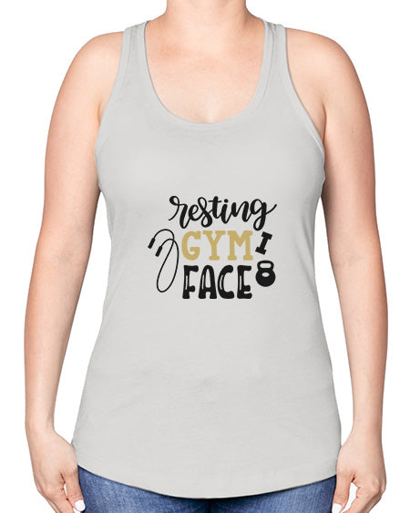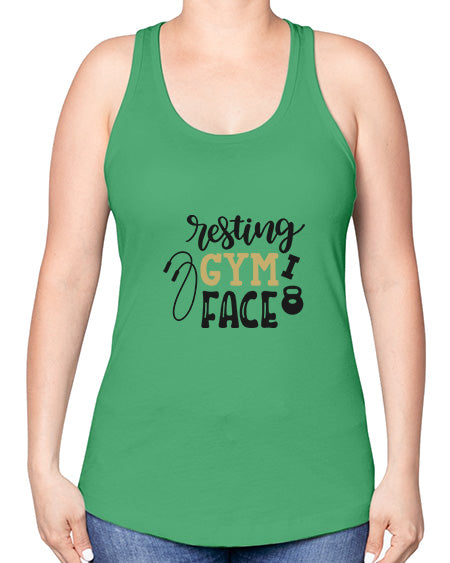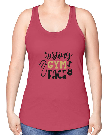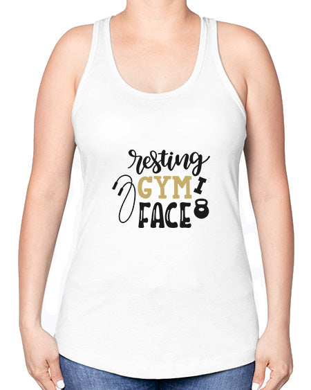 Resting gym face 499#- gym -Racerback Tank Note: There is a 2 - 4 day creation time, which may delay shipping. Features: - 60% combed ringspun cotton/40% polyester lightweight jersey