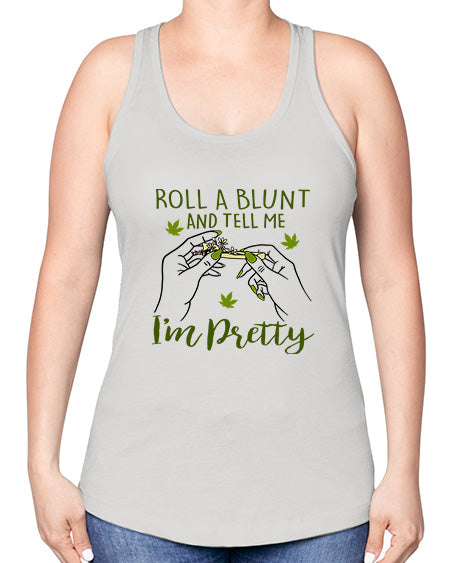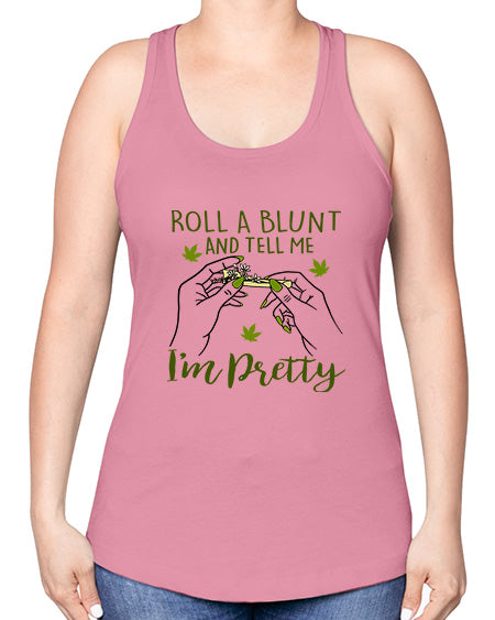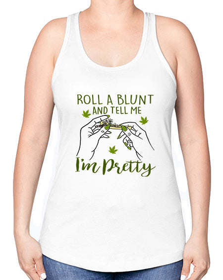 roll a blunt and tell me im pretty 1024# - marijuana -Racerback Tank