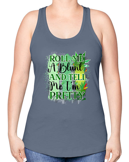 • Roll Me A Blunt And Tell Me Im Pretty 1025#- graphic -Racerback Tank