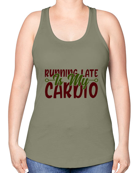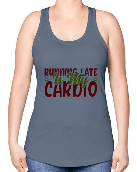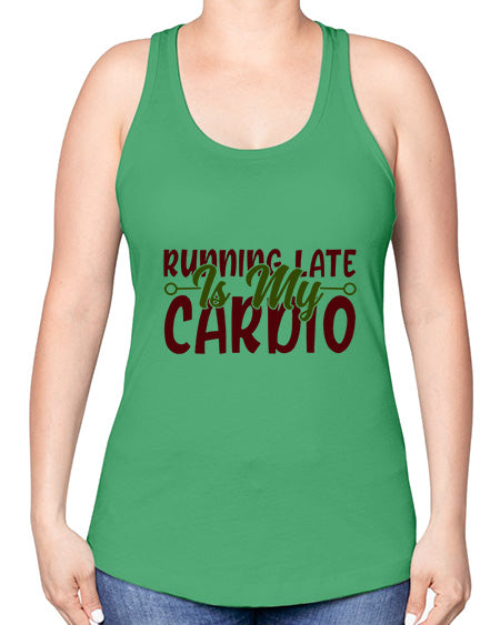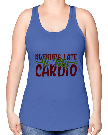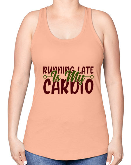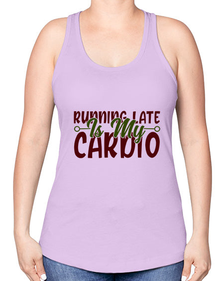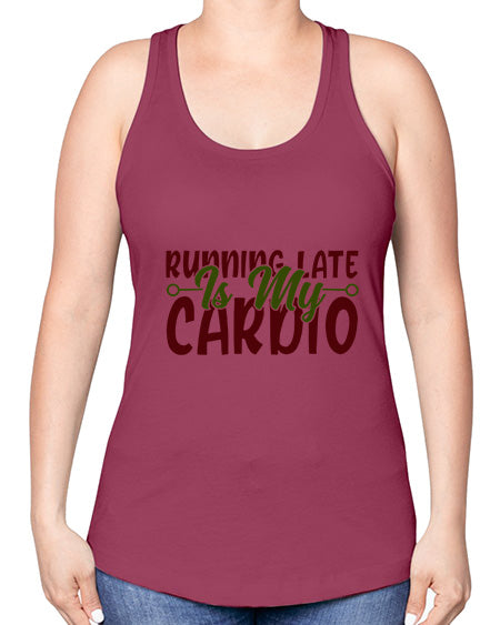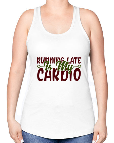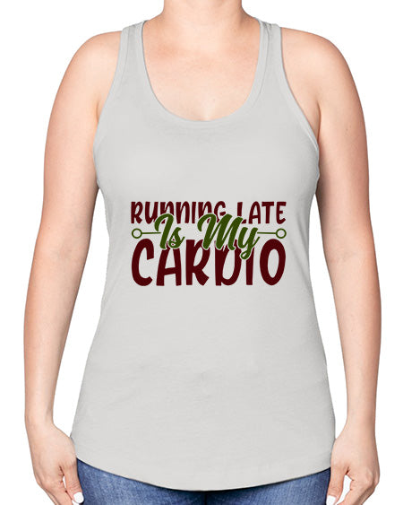running late is my cardio 65#- gym -Racerback Tank Note: There is a 2 - 4 day creation time, which may delay shipping. Features: - 60% combed ringspun cotton/40% polyester lightweight jersey