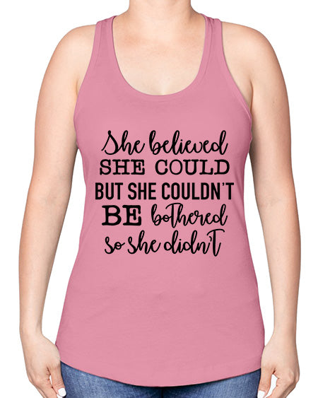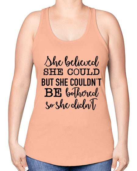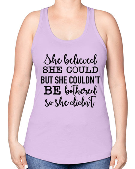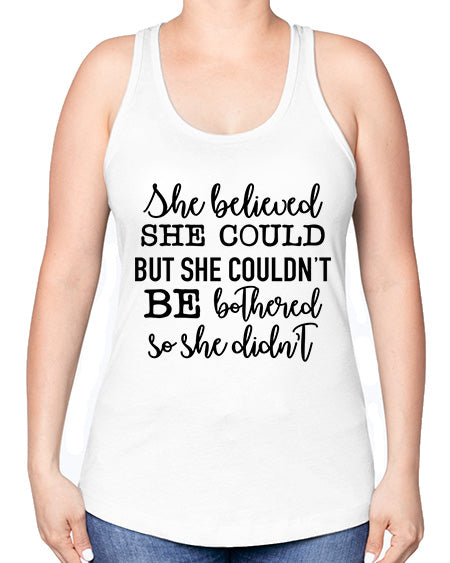 she believed she could but she couldnt be bothered so she didnt 1039# - funny -Racerback Tank