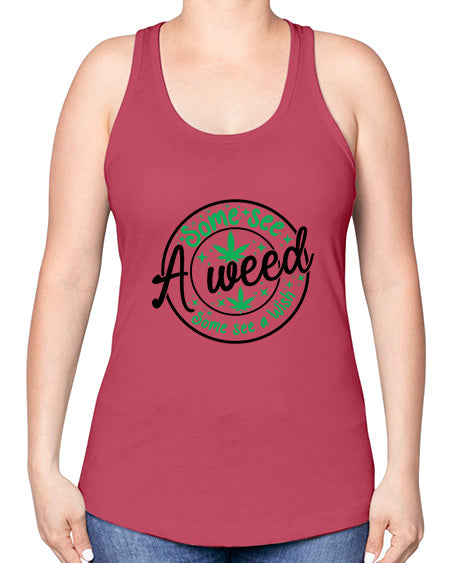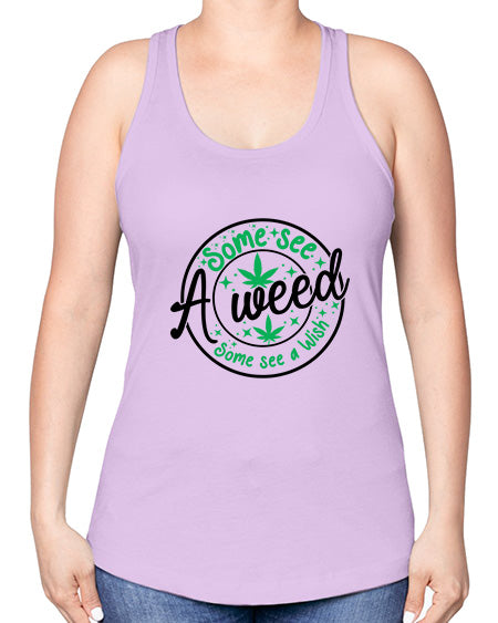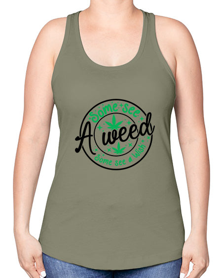 Some see a weed Some see a wish 1097#- graphic -Racerback Tank
