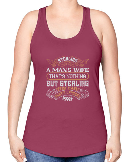 Stealing a mans wife thats nothing but stealing his car thats larceny 68#- car -Racerback Tank