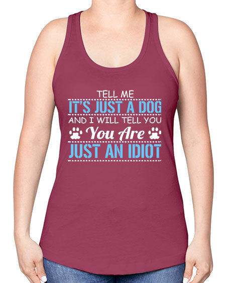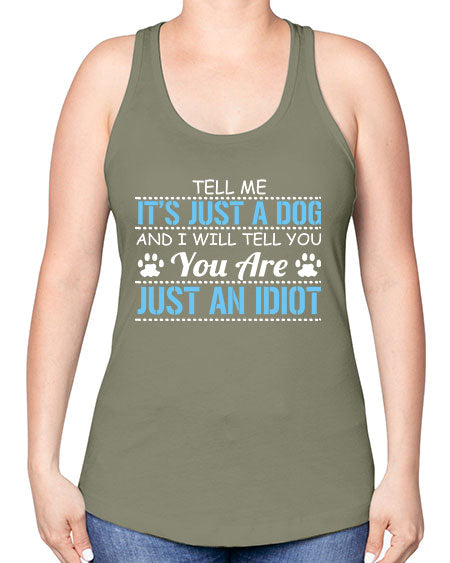 tell me its just a dog then your an idiot- dogs -Racerback Tank