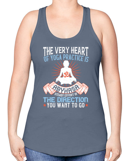 the very heart of yoga practice is abyhasa steady effort in the direction you want to go 564# - yoga -Racerback Tank