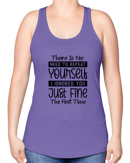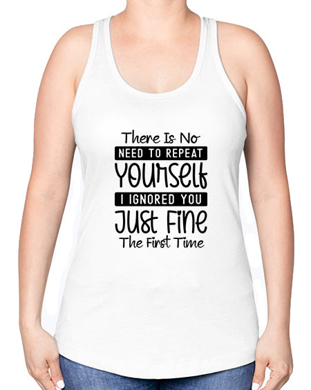 There Is No Need To Repeat Yourself I Ignored You Just Fine The First Time 1160# - funny -Racerback Tank
