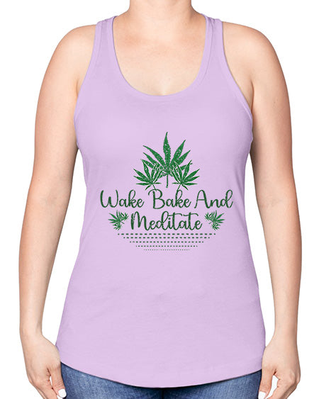 Wake Bake And Meditate Sublimation 1202# - marijuana -Racerback Tank
