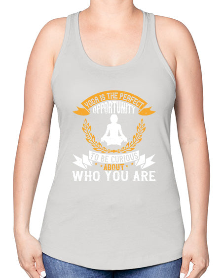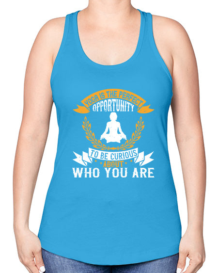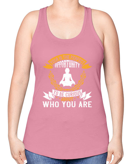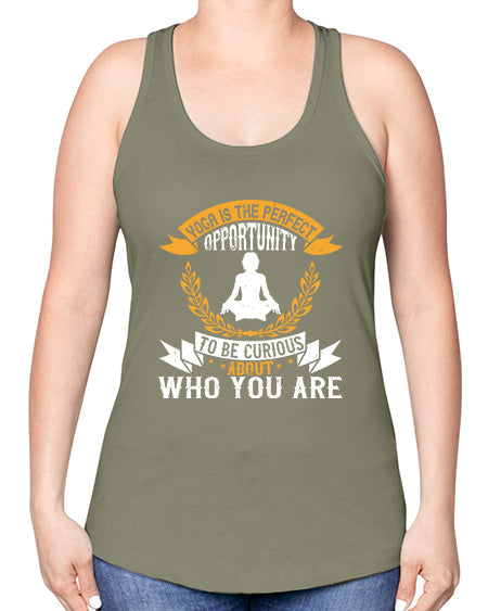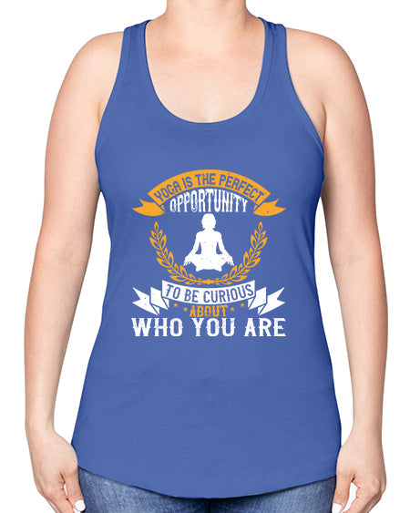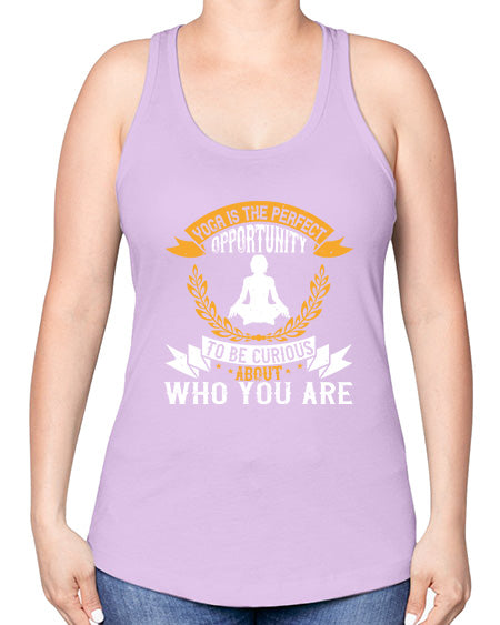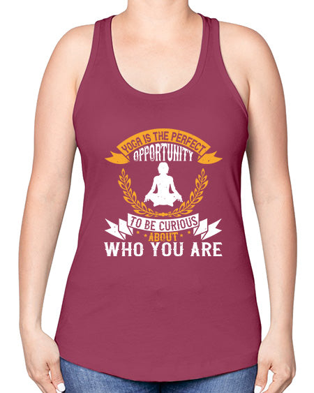 yoga is the perfect opportunity to be curious about who you are 625#- yoga -Racerback Tank