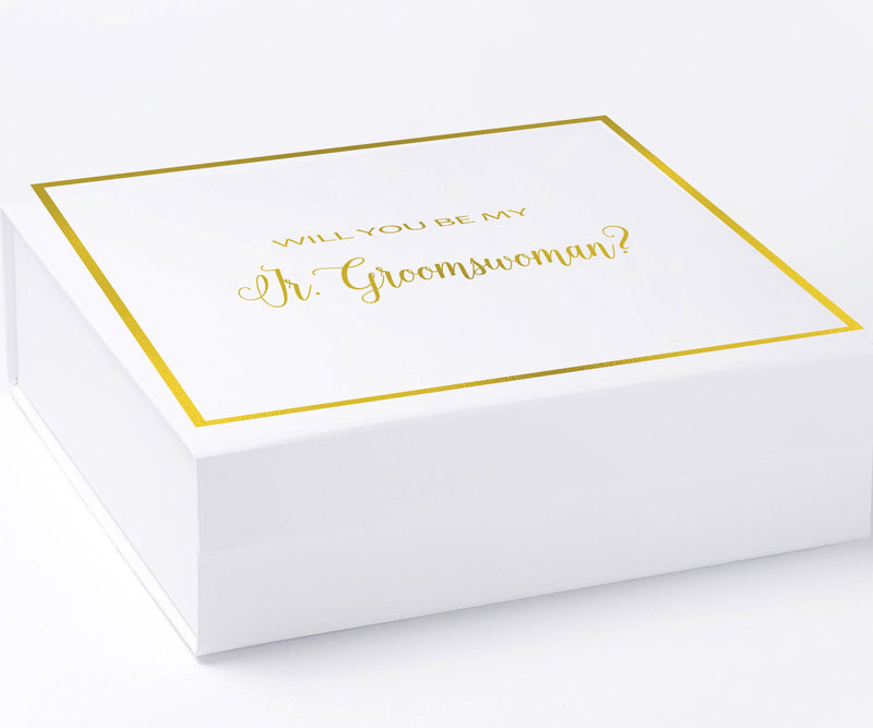 Will You Be My Jr Groomswoman? Proposal Box White - Border - No ribbon