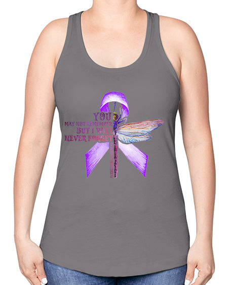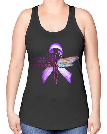 I Will Never Forge Alzheimer Awareness 179# - alzheimers -Racerback Tank