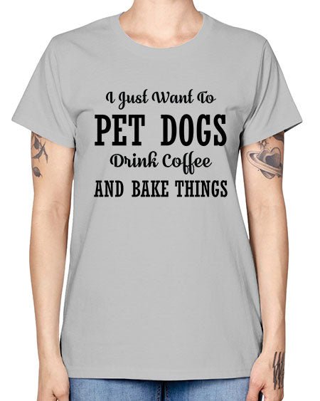 i just want to pet dogs drink coffee and bake things 163# - dogs- Ladies T-Shirt