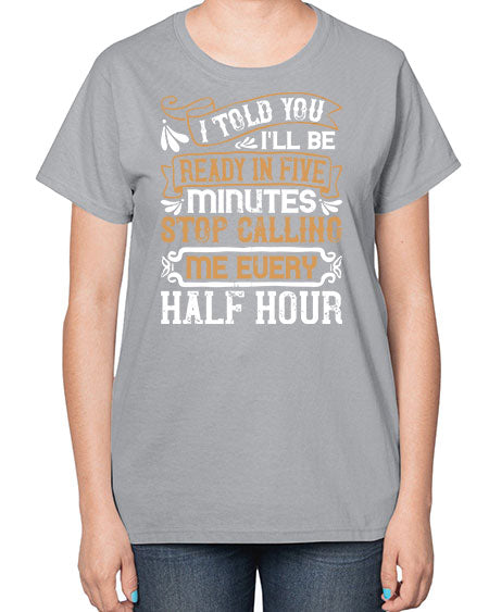 I told you Ill be ready in FIVE minutes stop calling me every half hourr Style 68# - pig- Ladies T-Shirt