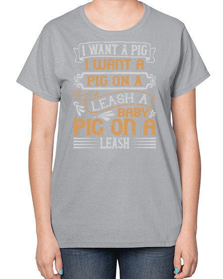 I want a pig I want a pig on a leash A baby pig on a leash Style 66# - pig- Ladies T-Shirt