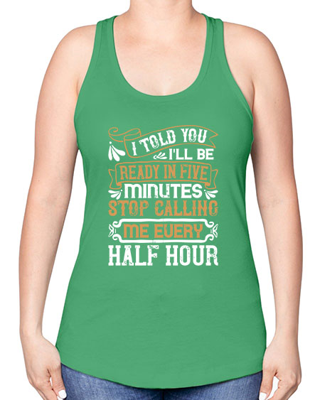 I told you Ill be ready in FIVE minutes stop calling me every half hourr Style 68# - pig -Racerback Tank