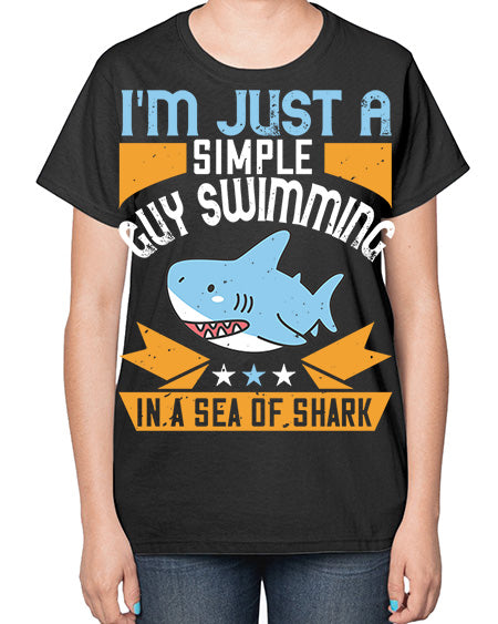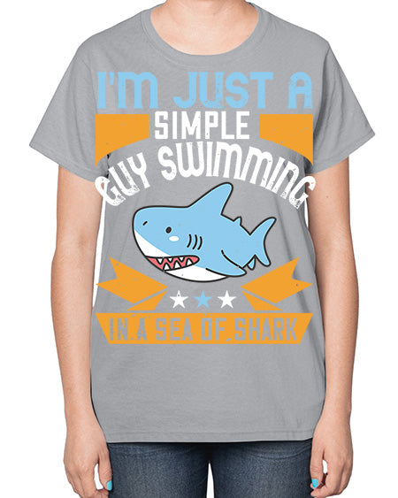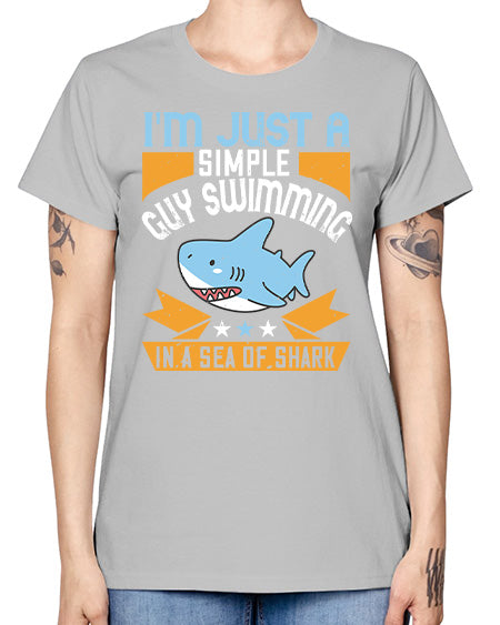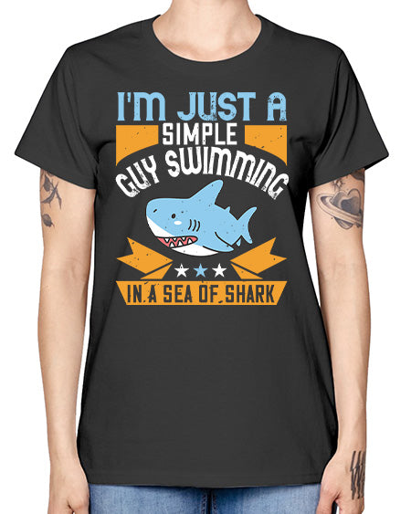 Im just a simple guy swimming in a sea of shark Style 74# - shark-fish- Ladies T-Shirt