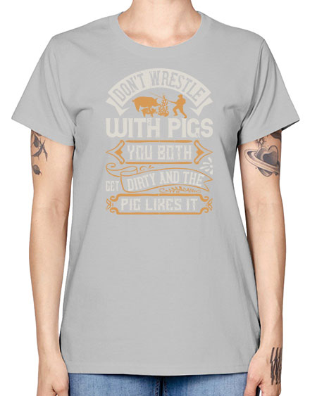 Don’t wrestle with pigs You both get dirty and the pig likes it Style 86# - pig - Missy T-Shirt