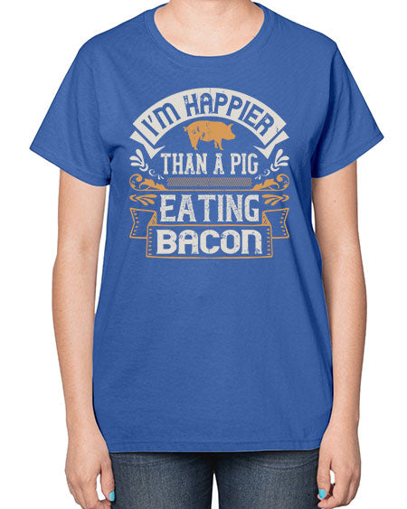 I’m happier than a pig eating bacon Style 51# - pig- Ladies T-Shirt