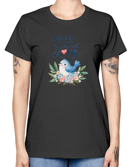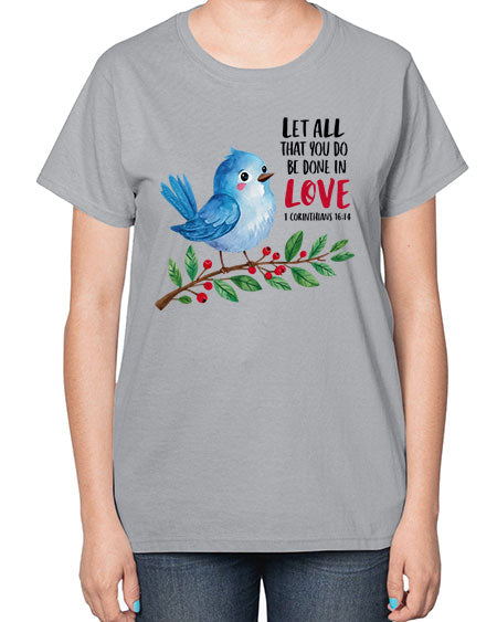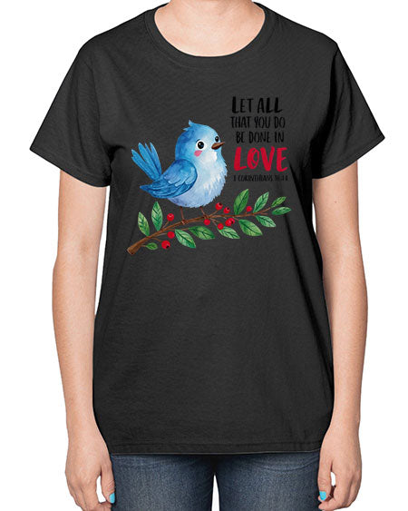 let all that you do be done in love 57# - birds- Ladies T-Shirt