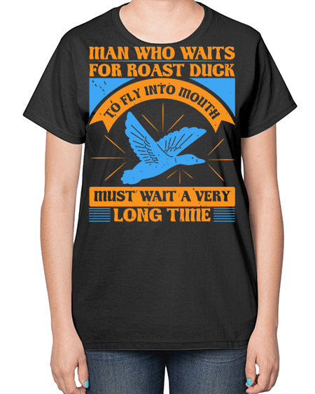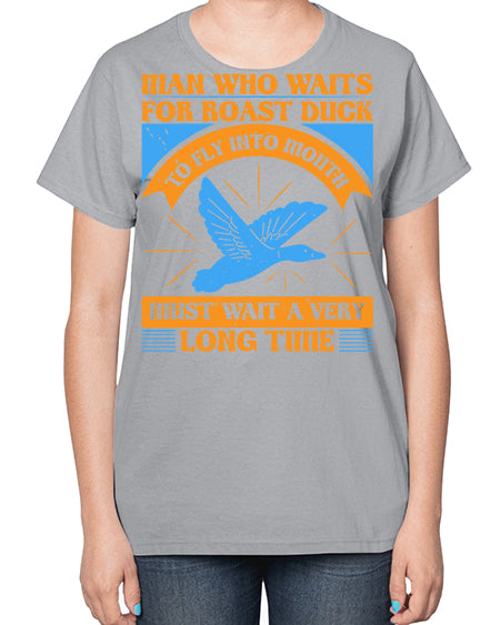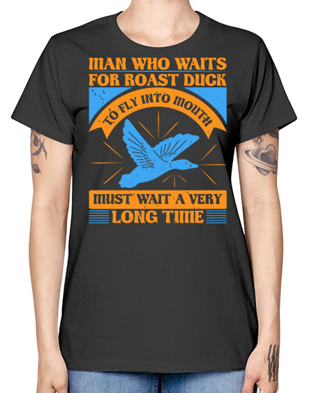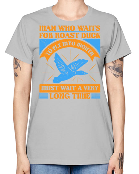 Man who waits for roast duck to fly into mouth must wait a very very long time Style 25# - ducks- Ladies T-Shirt