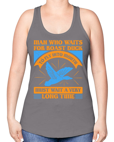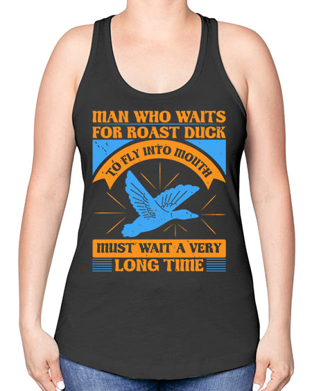 Man who waits for roast duck to fly into mouth must wait a very very long time Style 25# - ducks -Racerback Tank