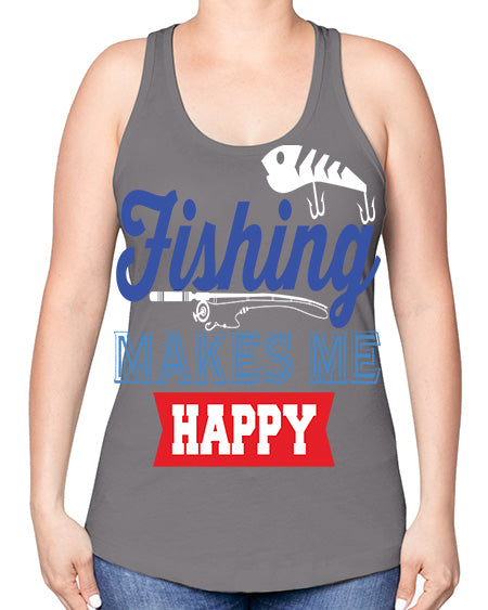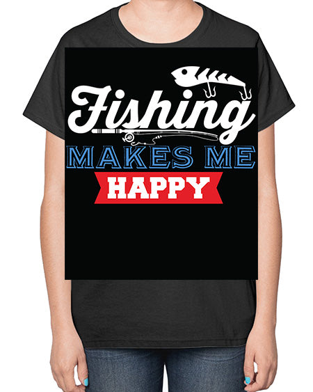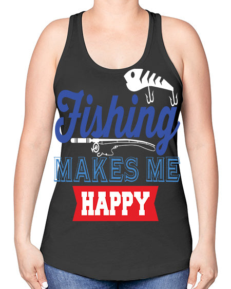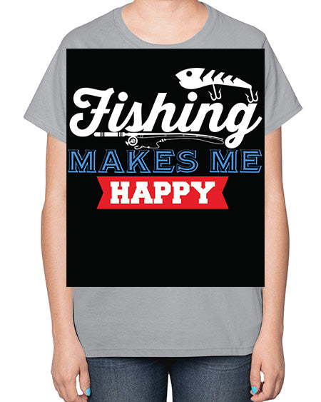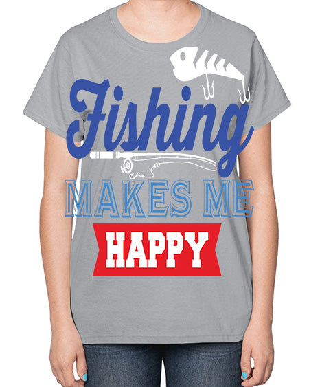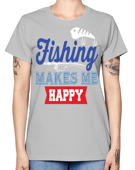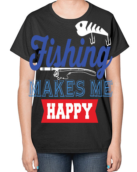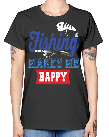 fishing makes me happy png 78# - shark-fish- Ladies T-Shirt