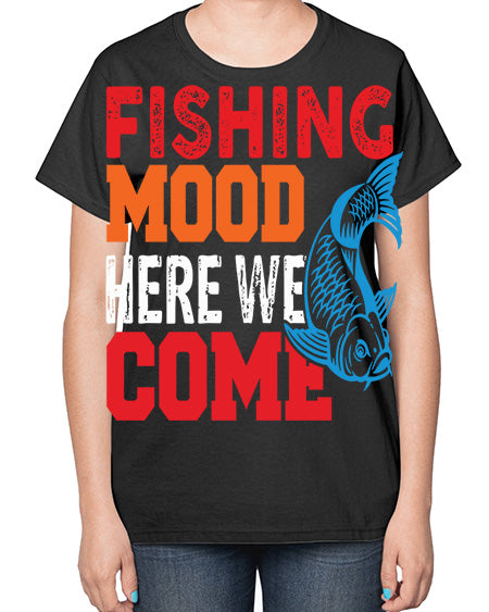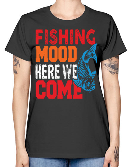 fishing mood here we come png 76# - shark-fish- Ladies T-Shirt