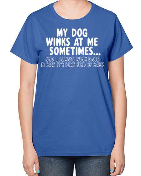 my dog winks at me sometimes and i wink back - dogs- Ladies T-Shirt