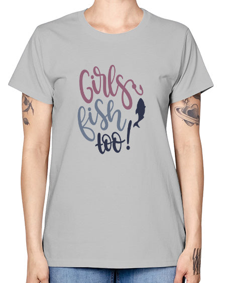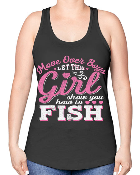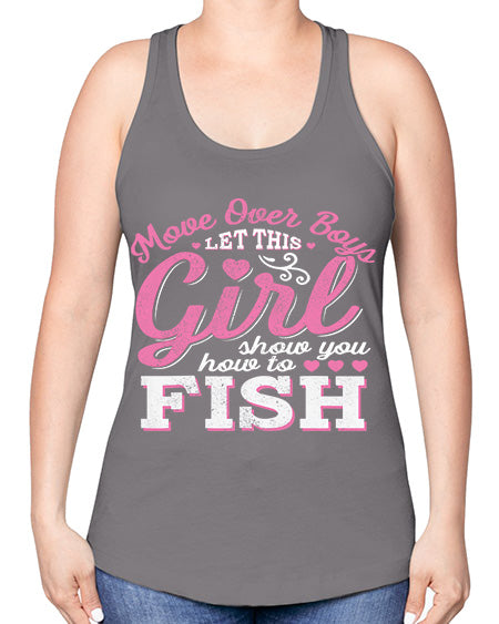 girls fish too 14# - shark-fish -Racerback Tank