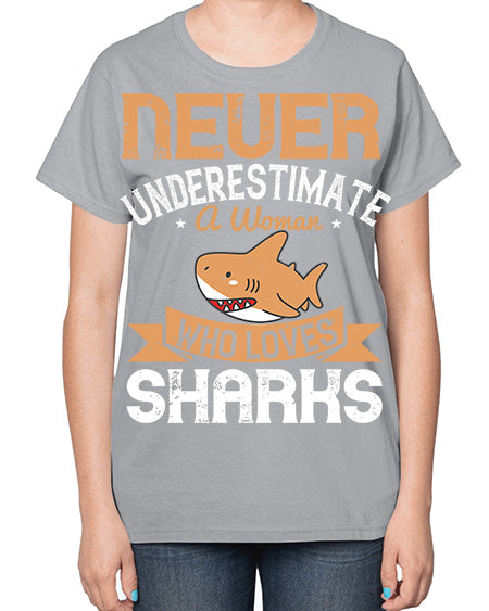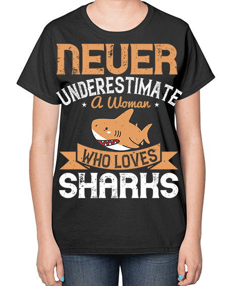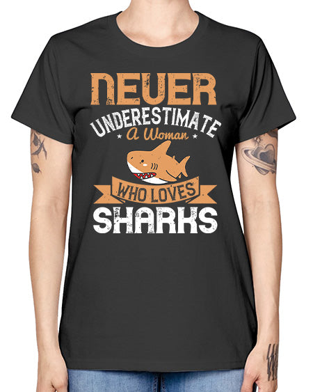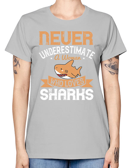 Never underestimate a woman who loves sharks Style 52# - shark-fish- Ladies T-Shirt