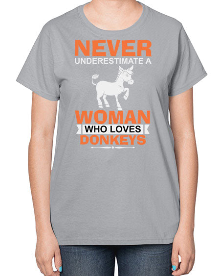 never underestimate a woman who loves donkeys Style 1# - donkey- Ladies T-Shirt