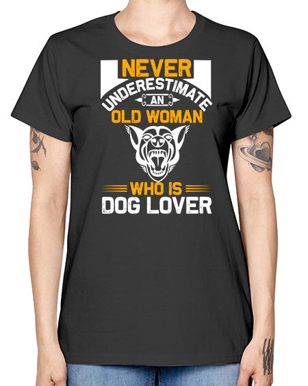 never underestimate an old woman who is dog lover Style 6524# - dogs- Ladies T-Shirt