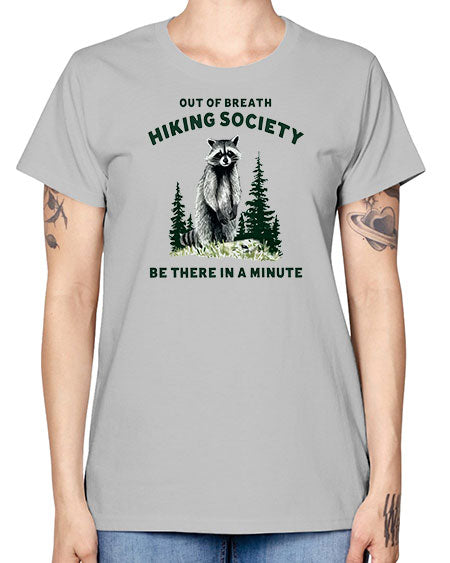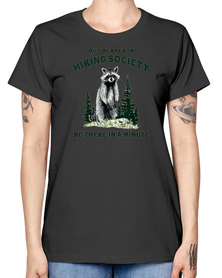 out of breath hiking society be there in a minute 33# - raccoon - Missy T-Shirt