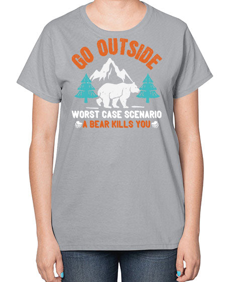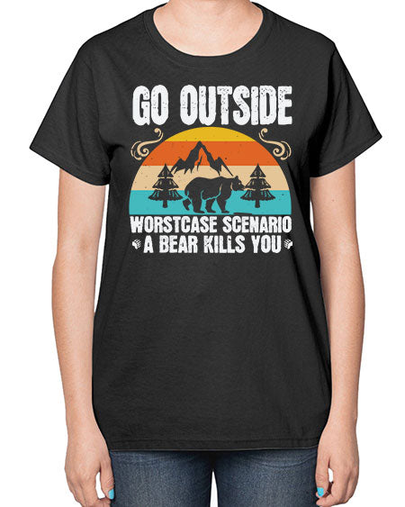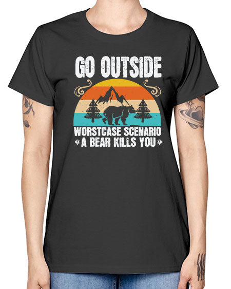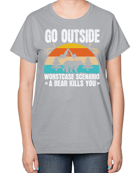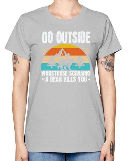 go outside worst case scenario a bear kills you 117# - bears - animals- Ladies T-Shirt